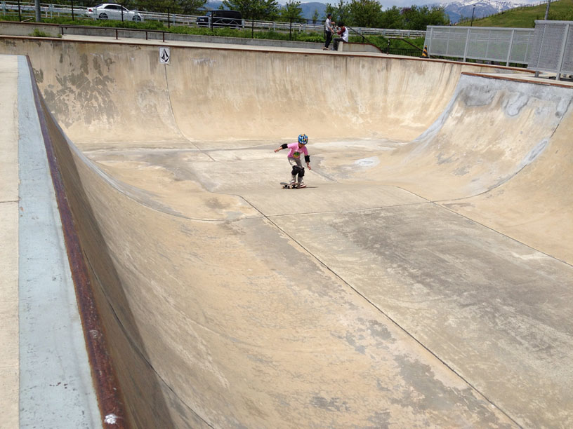 家族とお隣の市、寒河江市の「スケートパーク」に
