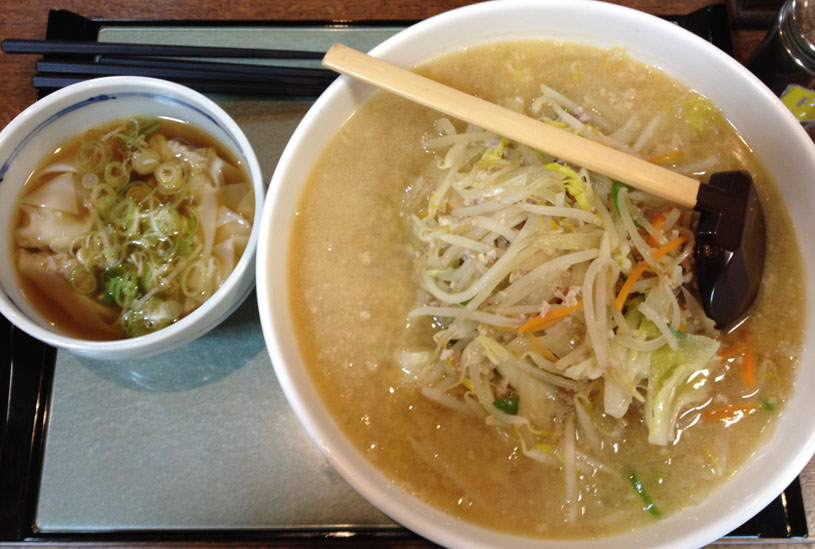 写真は味噌ラーメン+ワンタンスープ。